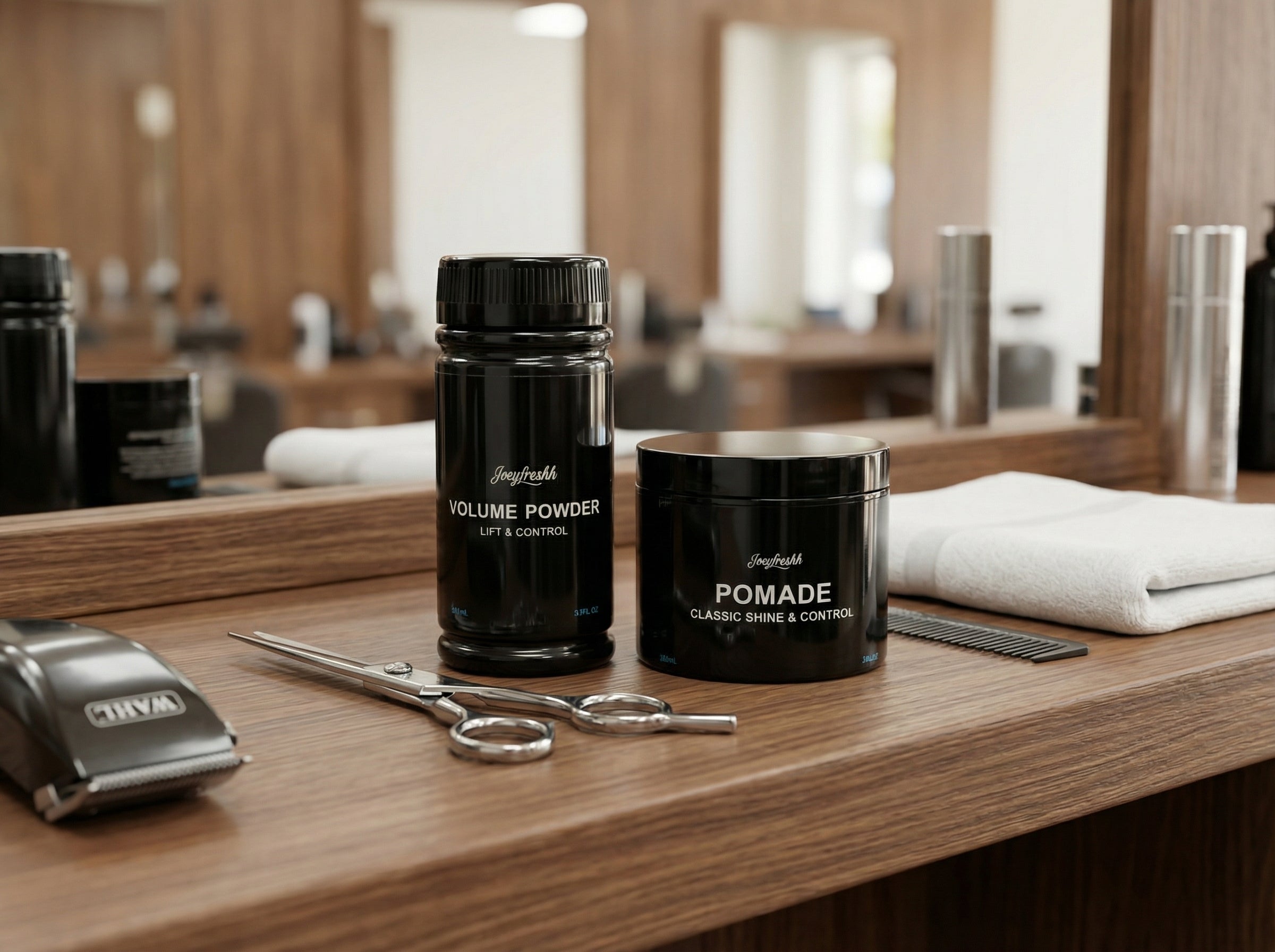 DE POMADE HEEFT EEN FRISSE KOKOSGEUR, HET TEXTUURPOEDER EEN SUBTIELE ZOETE GEUR. DE GEUREN BLIJVEN SUBTIEL AANWEZIG EN ZORGEN VOOR EEN VERZORGDE UITSTRALING.